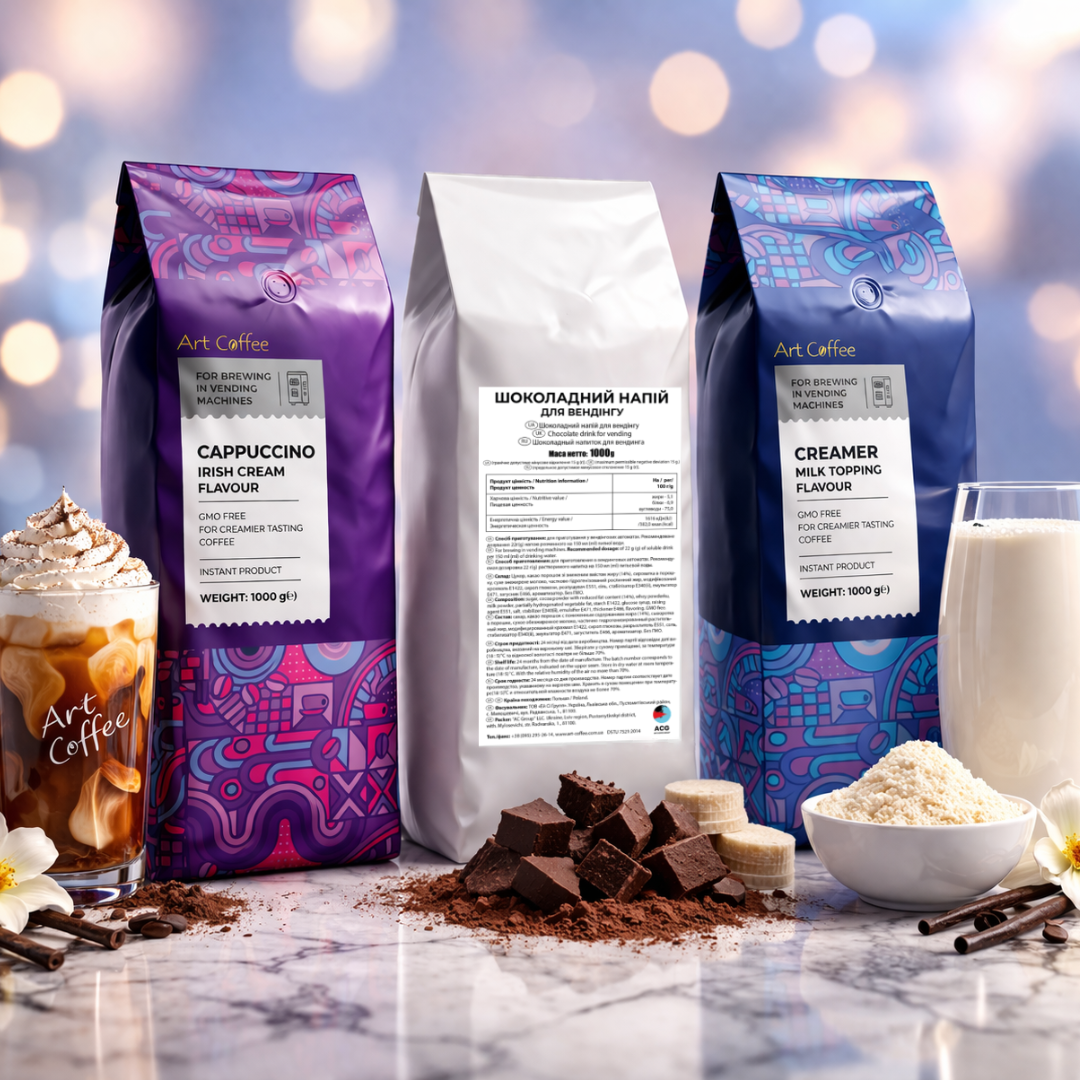 Сухі суміші для вендінгу Art Coffee - капучино, молоко та шоколад